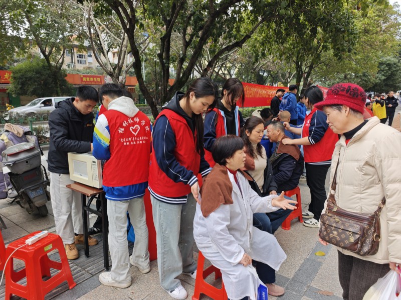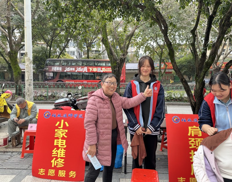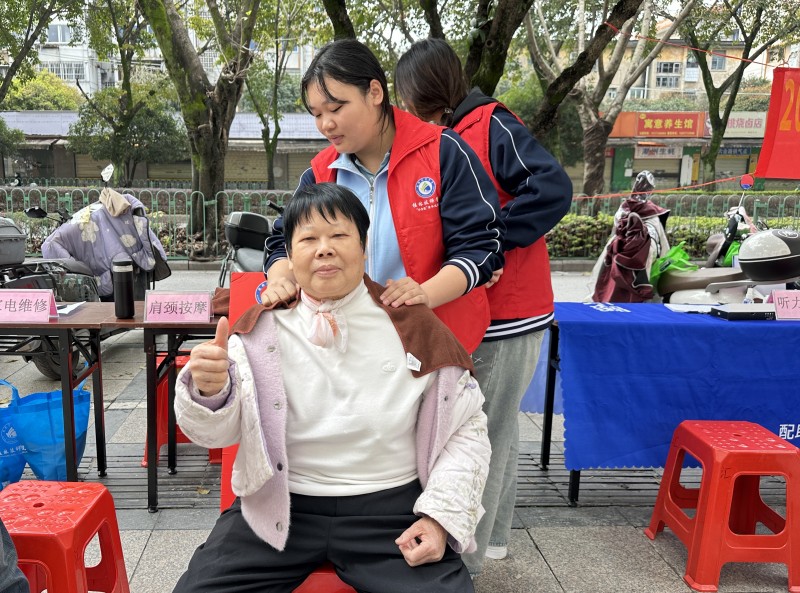 活动现场,在学院党员教师的带领下,“青匠先锋”学生志愿者化身“家电医生”,为居民义务检修烧水壶、电磁炉、吹风机等小家电,并结合专业所长普及安全用电知识,筑牢社区安全防线;美容班的学生充分发挥技能优势,为居民提供肩颈按摩与经络疏通服务,在缓解身体疲劳的同时传递温暖与人文关怀,赢得群众连连称赞。