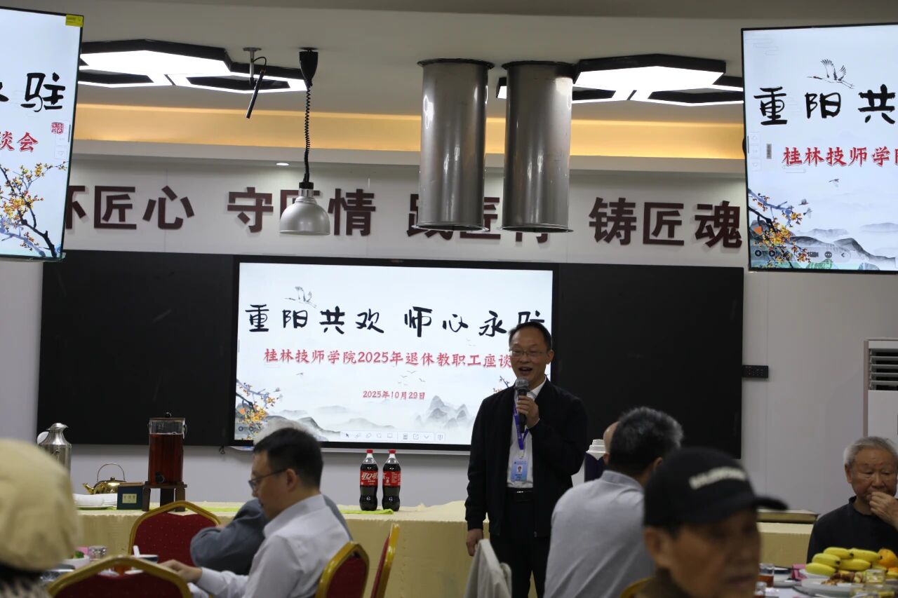 随后,学院领导和中层正职在烹饪实训室与30名退休教职工开展了重阳节座谈会暨敬老午宴。院长李金河在讲话中再次向全体教职工致以节日祝福,并重点介绍了学院未来发展规划,描绘了学院高质量发展的美好蓝图,进一步增强了教职工的归属感与凝聚力。
