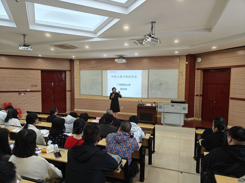 为深入践行“以人为本”的发展理念,切实关爱教职工身心健康,帮助广大教职工有效缓解工作与生活中的心理压力,提升情绪调节能力与心理韧性。11月7日,学院党委特别邀请广西师范大学马克思主义学院副教授,硕士生导师曾云莺,为学院教职工带来了一场主题为“缓解工作压力”的专题讲座。学院党委委员、专职副书记刘镇正主持讲座并讲话,全体教职工参加了讲座。