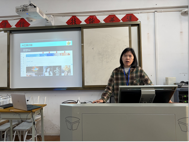 “AI视频制作”与“信息化软件办公教学”专题成为全场焦点。公共基础部主任何叶现场演示AI工具在教学设计、学情分析、资源生成中的高效应用。信息工程系教学副主任宋泓颖,指导教师亲手操作智能备课平台与虚拟仿真实验系统,亲身体验技术如何为课堂提质增效。参训教师感叹:“AI不再是概念,它正成为我们触手可及的教学伙伴!”