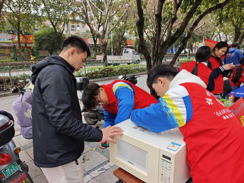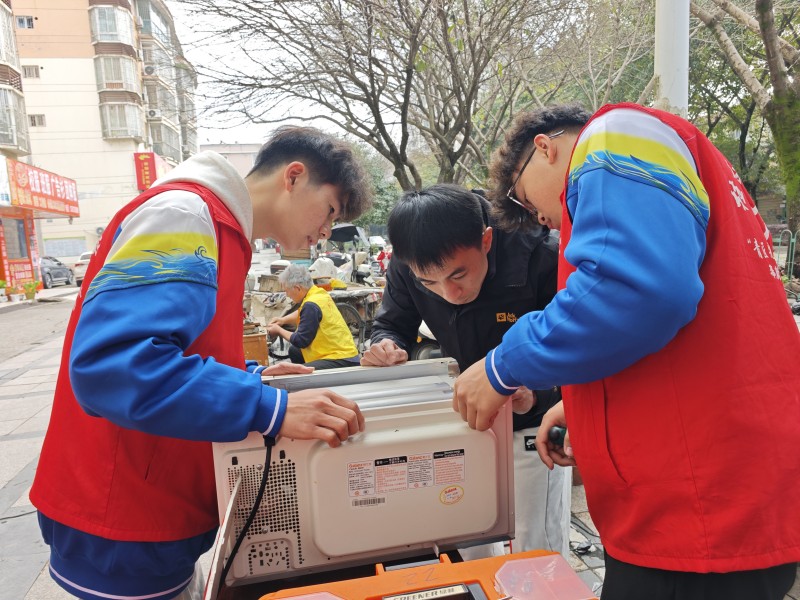 活动现场,在学院党员教师的带领下,“青匠先锋”学生志愿者化身“家电医生”,为居民义务检修烧水壶、电磁炉、吹风机等小家电,并结合专业所长普及安全用电知识,筑牢社区安全防线;美容班的学生充分发挥技能优势,为居民提供肩颈按摩与经络疏通服务,在缓解身体疲劳的同时传递温暖与人文关怀,赢得群众连连称赞。