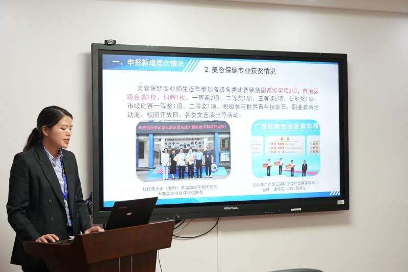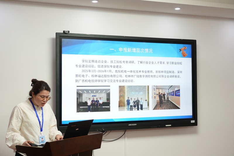 随后,各专业负责人依次进行汇报。智能制造技术应用(高级工)、计算机广告制作(高级工)、机电一体化技术(预备技师)、美容保健(高级工)等申报专业负责人,围绕专业定位、人才培养、师资配备、课程体系、实训条件及发展规划等方面进行详细阐述,全面展示新专业建设筹备情况。